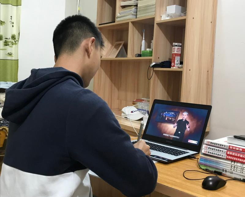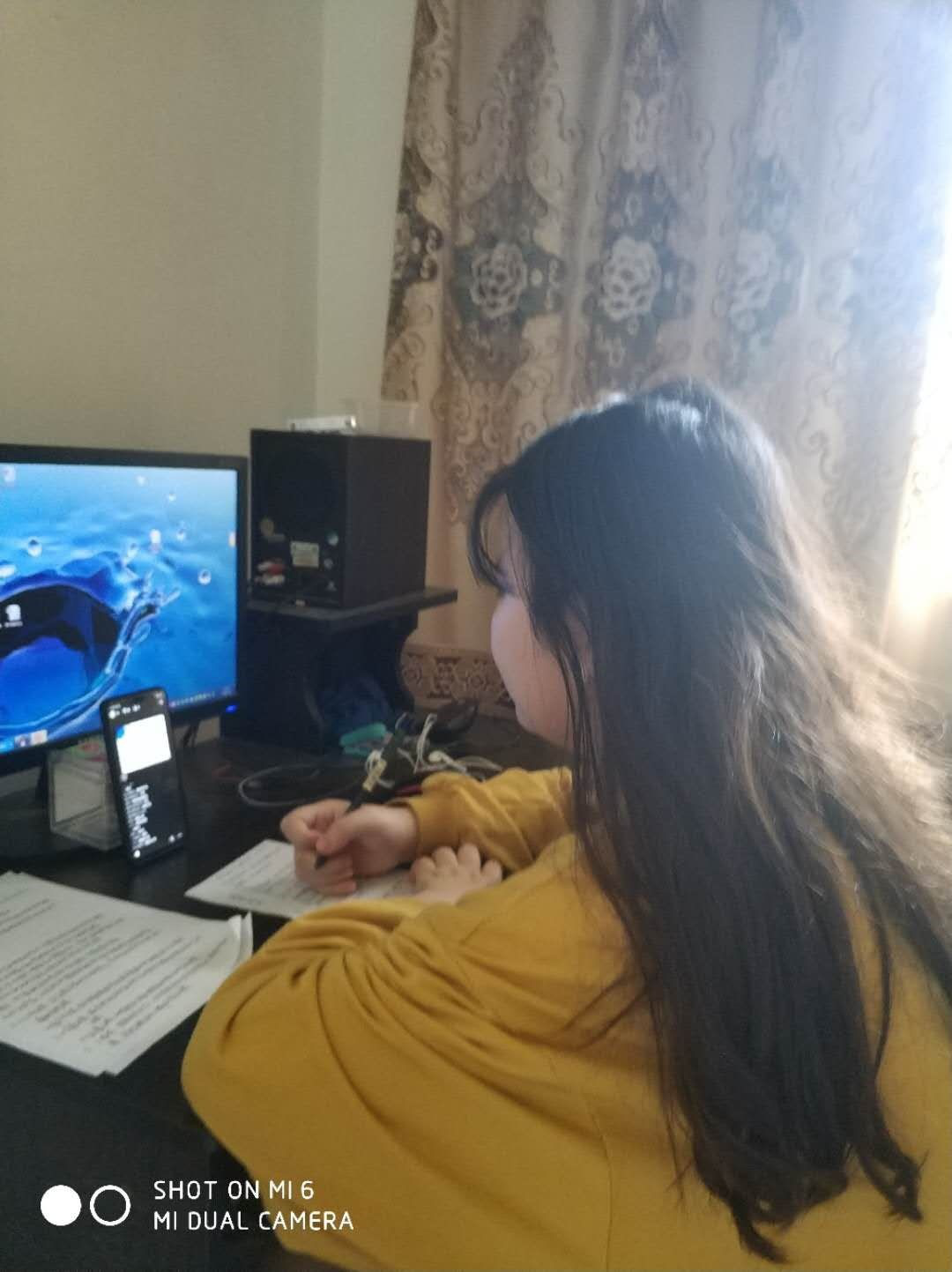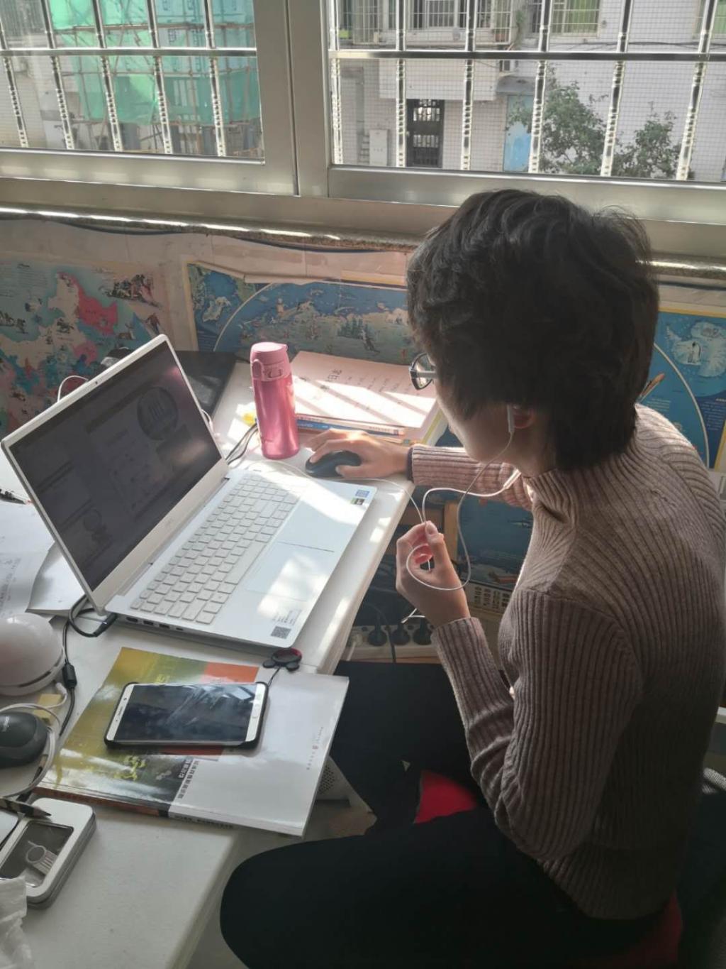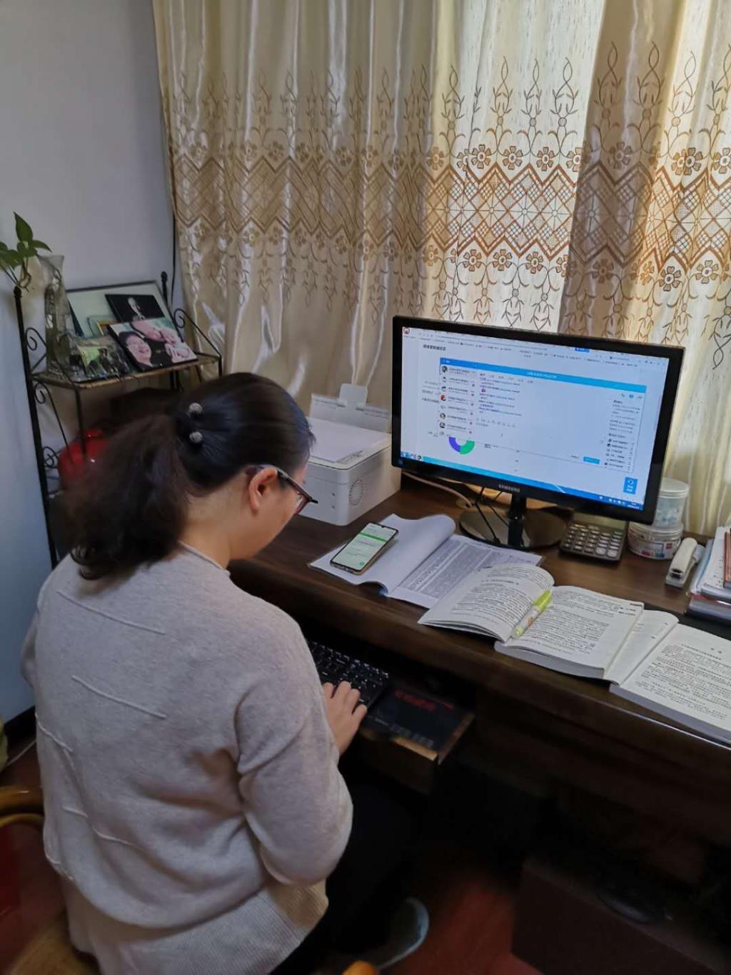 老师们认真准备的同时,同学们也积极响应,一人,一桌,一电脑,坐在家中也能徜徉知识的海洋。即使没有面对面的交流,小小的屏幕也阻挡不了师生之间的互动。