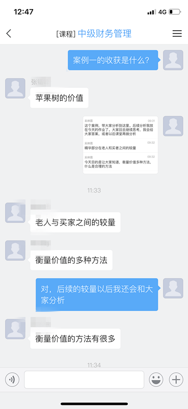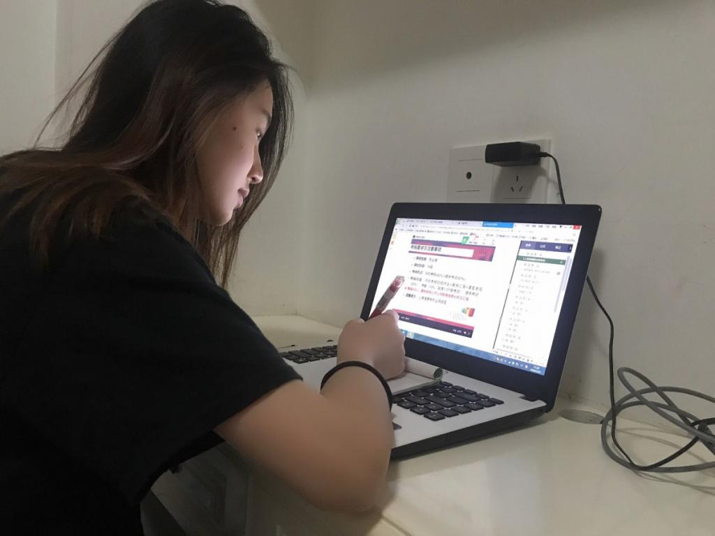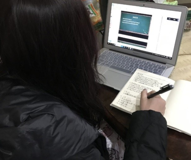 根据公司发布的课表,我跟着老师的要求和教学计划按部就班完成学习任务。老师们在学习通、钉钉等平台上发布视频,并与我们进行讨论。网课最大的好处就是可以回看,比如有些地方没有理解的就可以反复观看,将难重点记录下来。老师也会线上发布电子作业,老师们进行线上收发和批改,效率显著提升,也能得到及时反馈。但是线上学习也会有一些小弊端,比如长时间盯着手机电脑屏幕看,难免会疲劳;看视频的时候可能会注意力不集中,会导致学习效率不够高,因此更需要我们克服困难,自律学习。