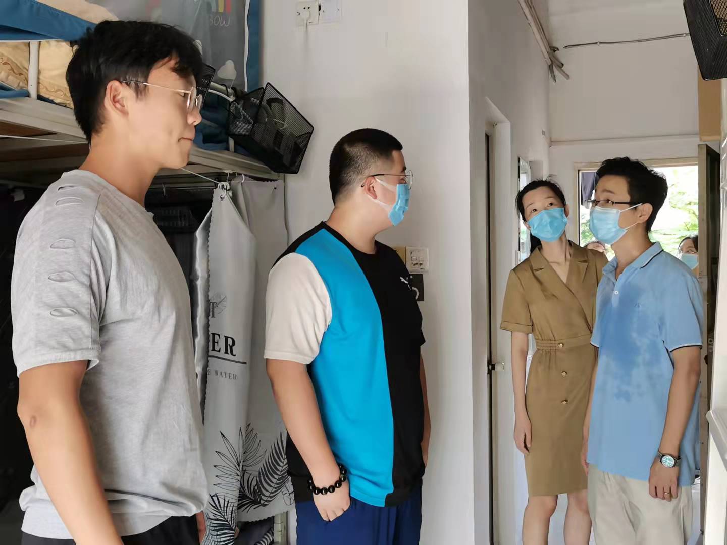 近日,国庆佳节期间,为确保公司疫情防控工作落实到位,更好地了解疫情下员工的学习生活状态,bevictor韦德常务副经理汪婷婷、党总支书记李葳葳和辅导员们一行走访员工宿舍,慰问在校员工,为他们送上公司的关怀和节日的祝福。