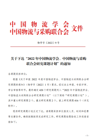 为整合中国物流学会产学研基地、有关院校、企业、协会及研究机构等各方研究力量,拓展行业研究平台,提升物流、采购与供应链研究水平,中国物流学会、中国物流与采购联合会联合印2022年度研究课题的通知。