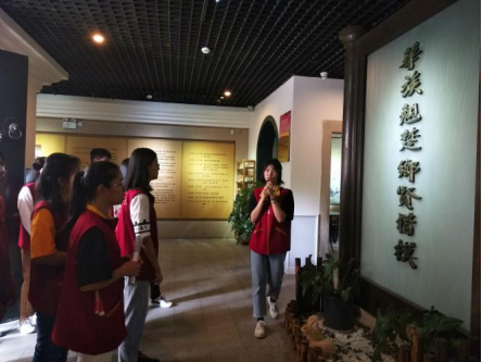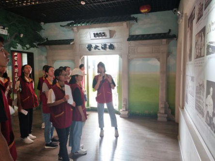 (图为:汪思婷同学为志愿者讲解陈文确、陈六使生平事迹)
