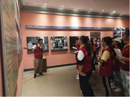 培训开始,由讲解员雷佳磊带领志愿者们前去陈嘉庚纪念馆。陈嘉庚纪念馆分为四个展厅,第一展厅是主要是陈嘉庚先生生平大事记的介绍、艰苦创业的历程;第二展厅是陈嘉庚先生精心营造的教育事业,他一生爱国爱乡, 重视教育科普、革新陋习, 深知教育是富国强国之根本,在社会主义建设时期, 他积极参政议政, 投资兴办实业, 并且将自己的财富捐献给国家发展经济和教育。从1913年创办集美小学开始, 陆续创办了各种公司, 这不仅给国家培养和输送人才, 也促进了厦门的快速发展。第三展厅是介绍作为社会活动家的陈嘉庚先生。他一生公忠为国,不惧强权,敢于言人所不敢,为人所不敢为。第四展厅是介绍陈嘉庚先生的身边人,一批精英人才,陈嘉庚事业最得力的支持者,其中包括陈文确、陈六使等人。