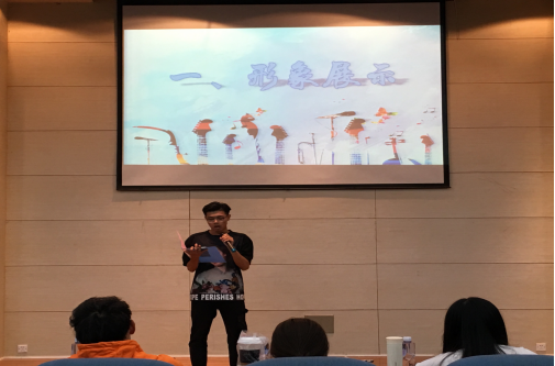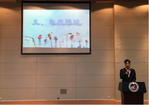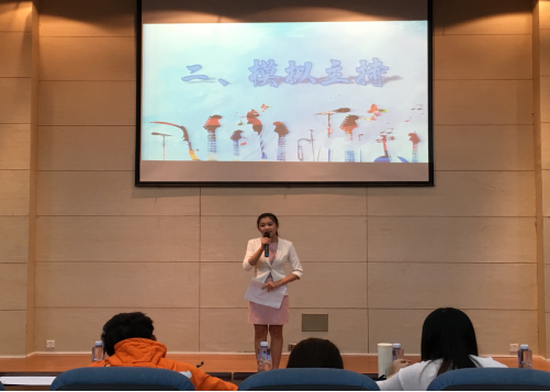 首先,由主持人上台讲话,介绍到场嘉宾及比赛规则。本次大赛分为三个环节,环节一为自我介绍、才艺展示。十七位选手踏着自信的步伐迈向舞台,介绍家乡、兴趣,并通过朗诵及唱歌的形式进行才艺展示,选手们声情并茂,语调饱含情感,使评委们身临其境;环节二为模拟主持,选手自选主持稿,以主持人的身份为节目进行主持,深情介绍该节目;环节三为即兴评述,由台下主持发问,选手们对该问题即兴评述,表达看法。选手们完成三个环节后,评委们根据选手的现场能力即表现给出相应的分数。