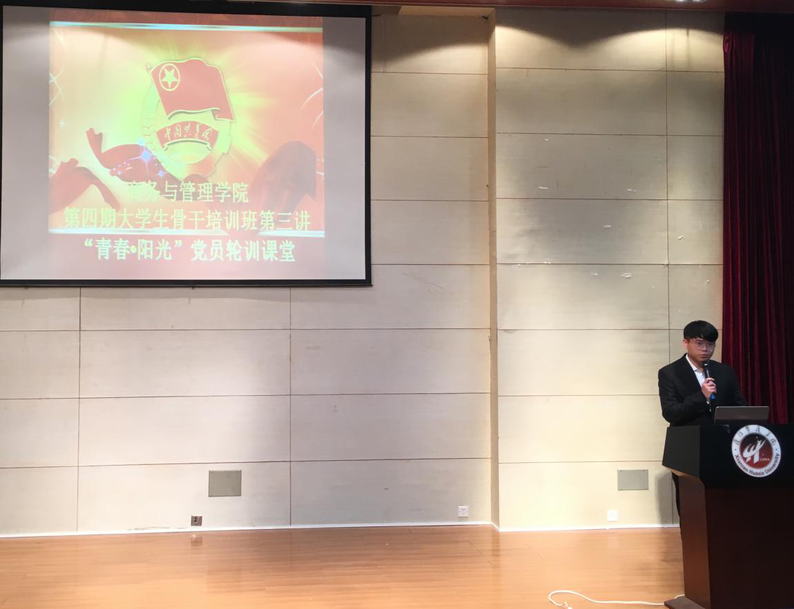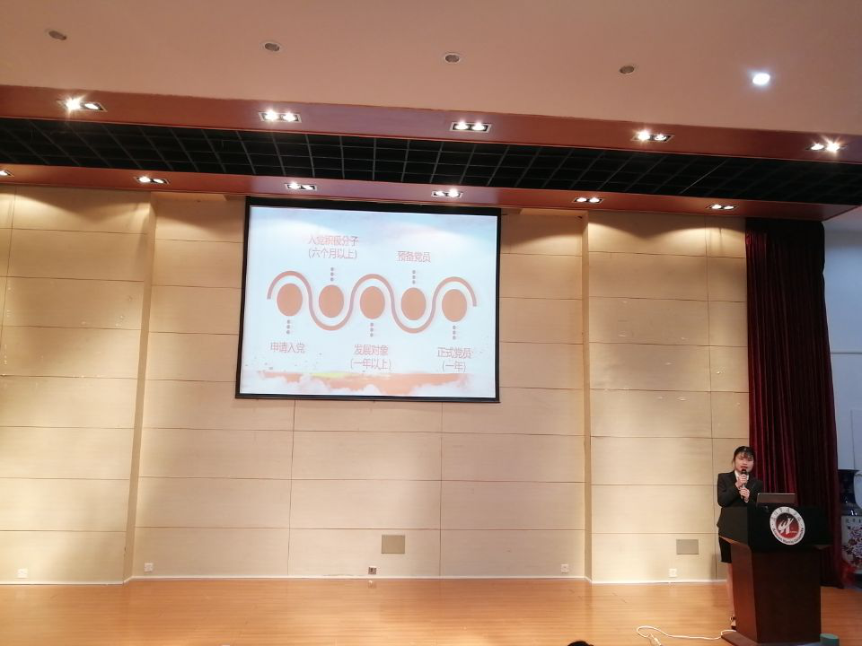 本期骨干培训大会首先由16级尤雅军同学进行入党流程的PPT讲解,PPT主要从入党流程、申请入党手续、确定入党积极分子这三个方面展开介绍,分享了一些常见的党团小知识,并且针对一些入党申请书格式的小错误提出意见。随后,由今年8月在中共井冈山市委党校、井冈山干部公司结业的陈英俊同学分享他的成长故事,他给同学们提供了一些员工会工作的建议和指导。用与现场观众和互动的方式,现场交流讨论了员工干部在员工会和班级中应当如何扮演好自己的角色,并且简述了自己在井冈山培训工作的心得体会,为同学们提出建设性的建议。