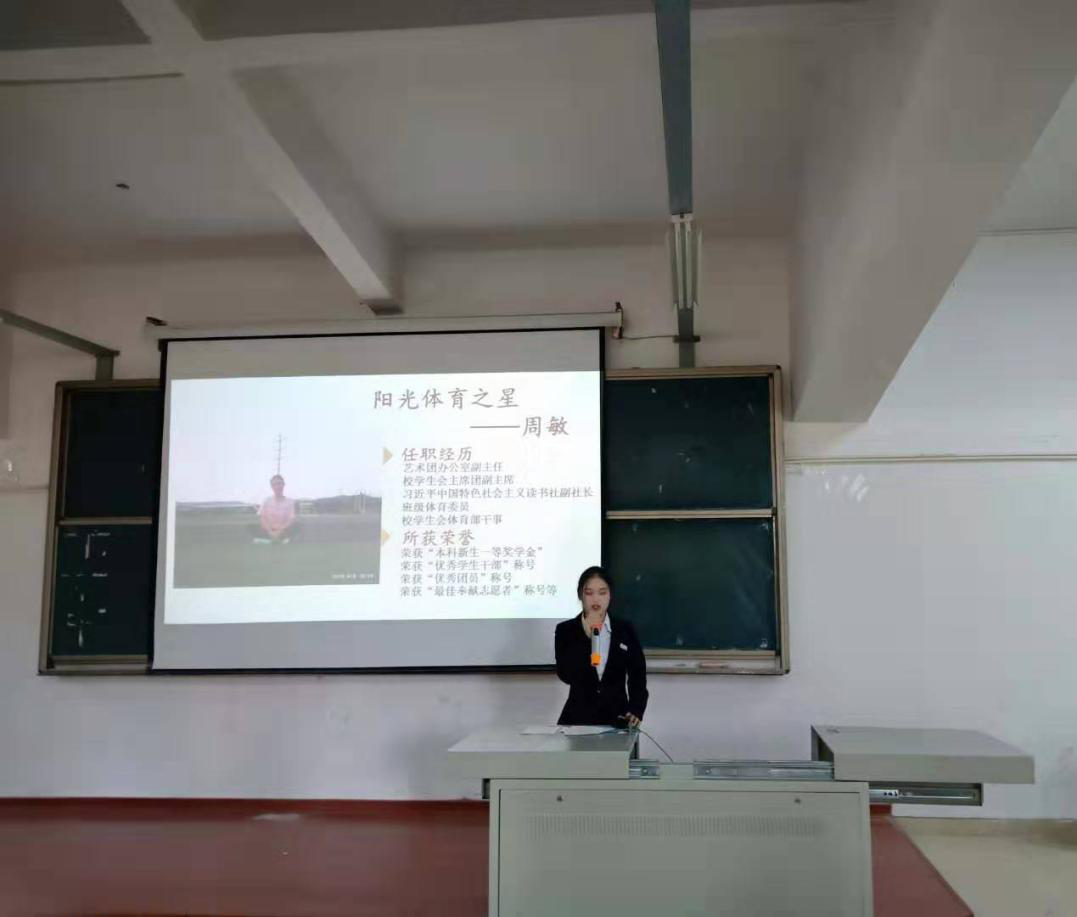 “阳光体育之星”周敏同学分享了公司的阳光体育建设以及自己和体育的故事。最后希望同学们要加强体育锻炼、提高生活幸福感。