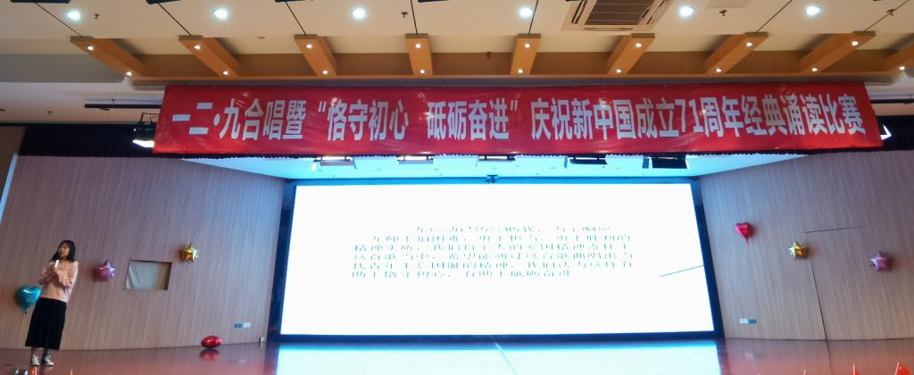 12月3日晚,公司在俊秀报告厅成功举办一二·九合唱暨“恪守青春,砥砺奋进”庆祝新中国成立71周年诵读比赛。此次比赛的评委有bevictor韦德团总支副书记熊玉煊、bevictor韦德员工分会主席黄舒琪、bevictor韦德自律分会副主席郭陈隆、bevictor韦德员工分会副主席李明峰、郑明珠、颜楚苹。