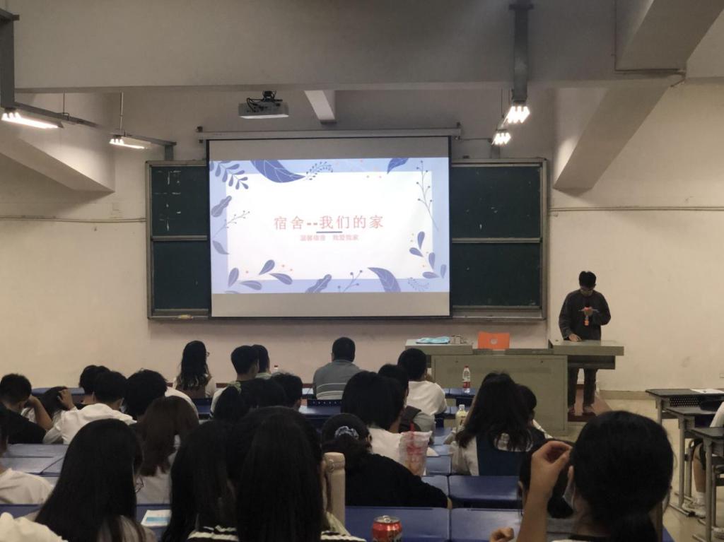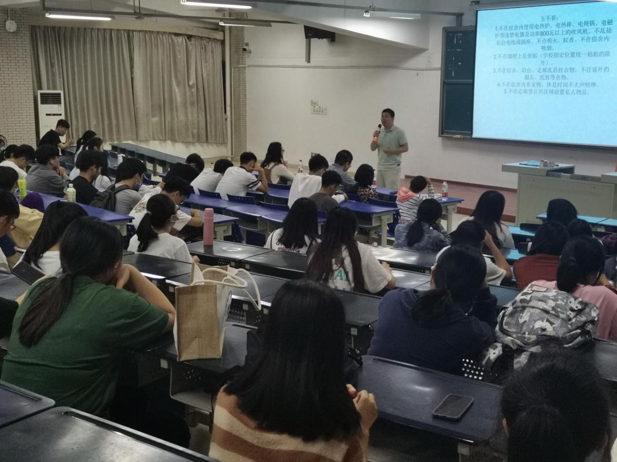 最后,公寓办薛超群老师给大家做总结发言,他介绍了德育学分制度、员工宿舍内务管理规范,强调我们要精心建设宿舍,打造优美、安全的宿舍环境。