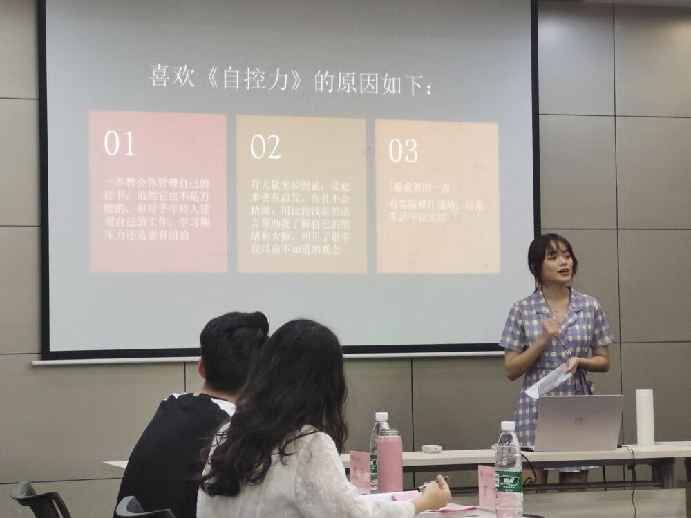 读一本好书能仰望星空、敬畏未知,来自员工会的18位选手通过PPT展示的形式分享了各自的读书心得与感悟。外联部程尚灵分享美国作家凯里麦格尼格尔的《自控力》,指出当代年轻人缺乏自控力的现状,阐述自律对人生的重要性;志愿者协会刘程锋分享作家余华的《活着》,感叹人类在面对苦难时的承受能力以及对世界的乐观态度;新媒体部张伟杰分享台湾作家三毛的《梦里花落知多少》,讲述作者敏感细腻的情感和曲折的人生,哀而不伤,对人生依旧充满着坚定。