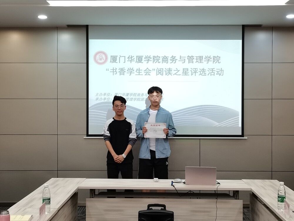 分享结束后,辅导员曾咪咪老师指出选手们过程中的不足并给出了建设性意见。经过四位评委的现场打分,新媒体部张伟杰获得了本次“书香员工会”阅读之星称号。