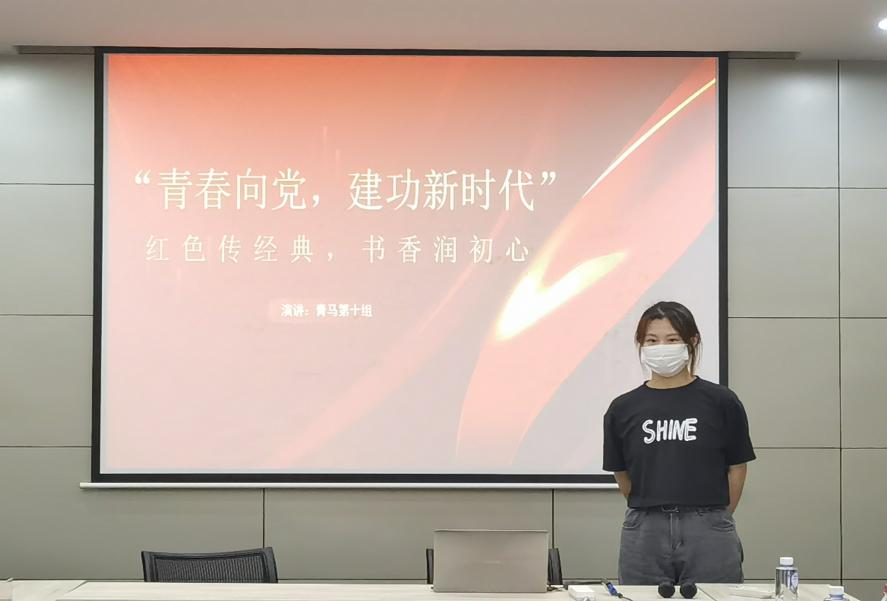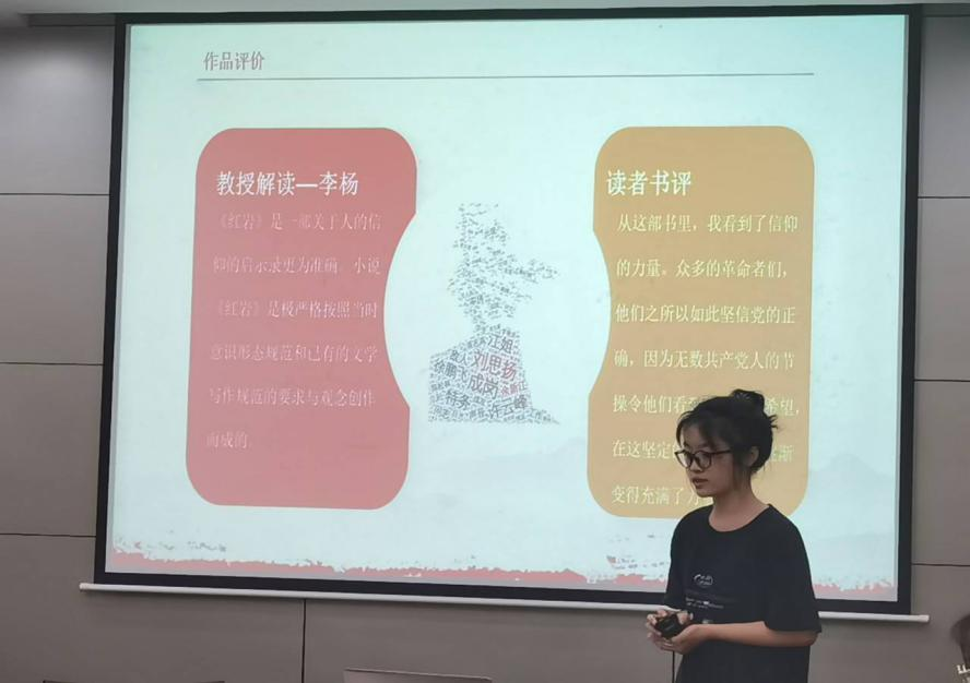 在主持人的开场下,心得汇报活动正式开始,小组负责人通过PPT展示所选红色书籍的内涵,汇报本组感悟。每个小组的汇报都各具特色,积极向上,饱含深情。