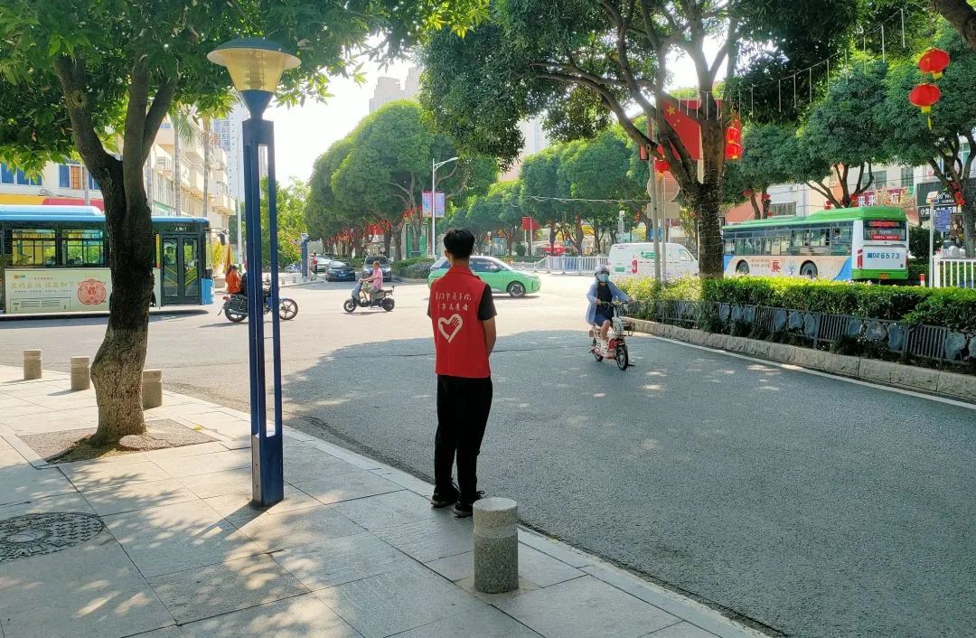 绿荫下,人行道旁,处处都是耀眼的“红衣天使”。志愿者们分工明确,垃圾清扫、交通督导,在集美文化馆周边践行着“志愿精神”。这是一次感受文化的熏陶与践行奉献精神相融合的志愿服务。