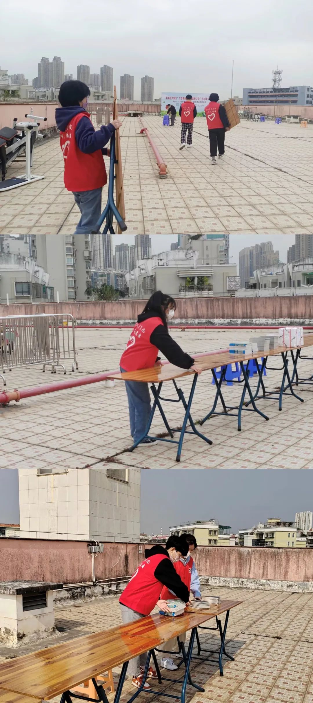“红衣”哥哥姐姐在一旁辅助挑选摆放