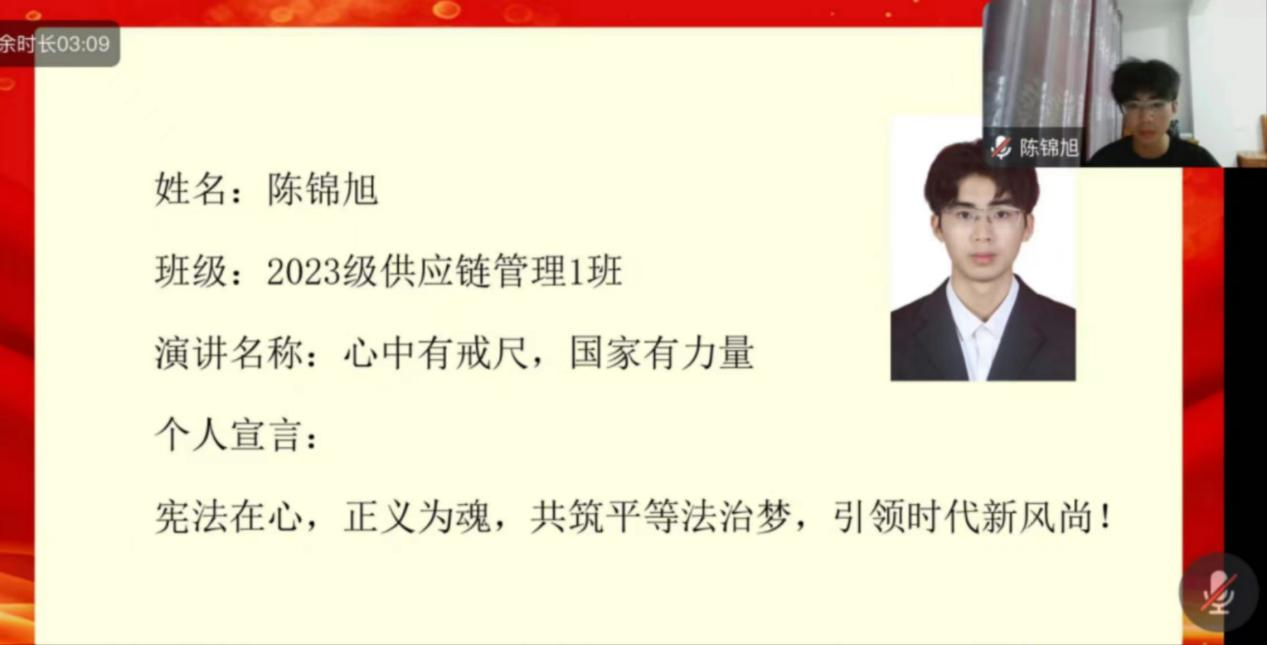 评委老师依次点评了各位参赛选手的演讲内容,肯定了同学们主动学习宪法的好学精神,本次演讲比赛不仅丰富大家的课余生活,也是普法宣传教育活动,希望同学们能够以此为契机,在今后的学习生活中自觉维护宪法,培养法治意识,鼓舞身边更多的人来学宪法,讲宪法。