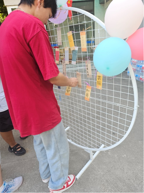 同学们纷纷提笔,在便签上写下对祖国75周年华诞的美好祝福,抒发内心的爱国之情。