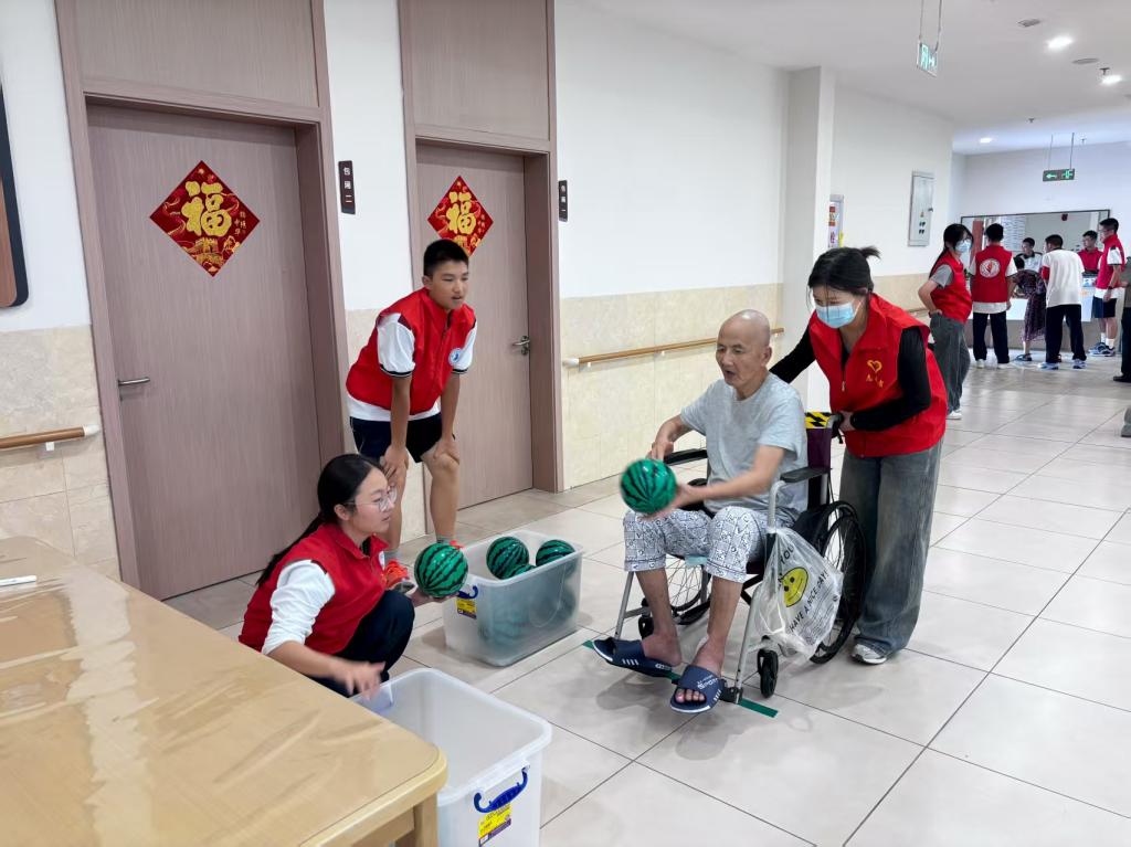 实践队成员们耐心陪伴老人闲话家常,静静倾听那些镌刻着岁月印记的人生故事;并带领老人们做简单的健身操,在舒展肢体的同时让身心得到放松;还精心组织“投西瓜”“套圈”等趣味游园活动增添活力,为老人们送去温暖与欢乐,用青春之力生动诠释着尊老敬老的传统美德。