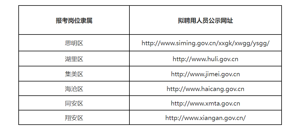 根据岗位要求以及考试、体检、考察结果,确定拟聘用人员名单,市属和各区属事业单位拟聘人选分别在“报名系统”和各区相应网站上公示7个工作日。公示网站如下: