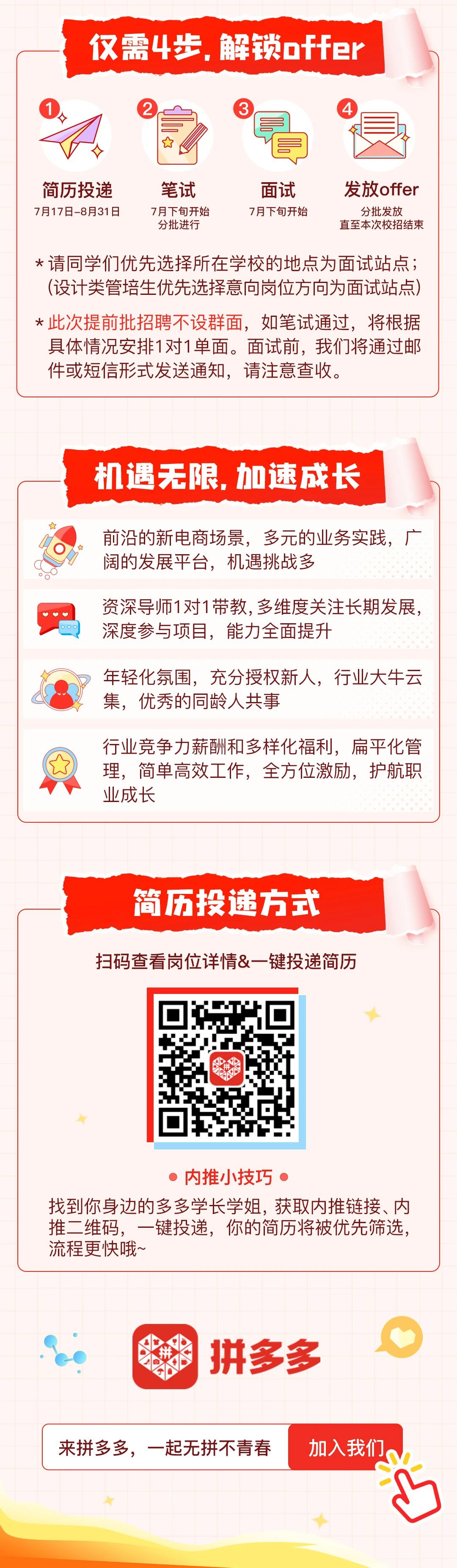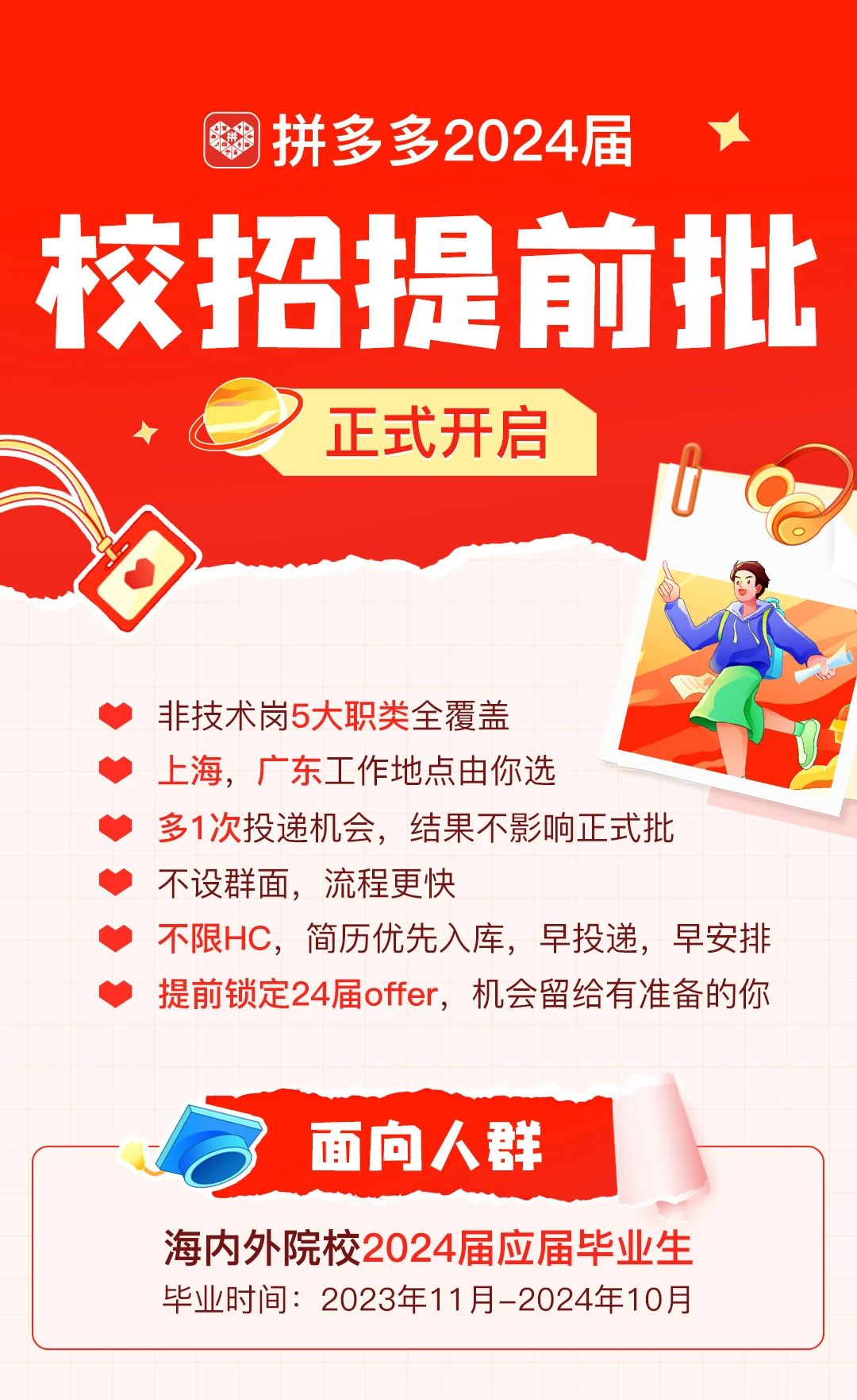 【招聘资讯】拼多多2024届校园招聘提前批全面启动!
