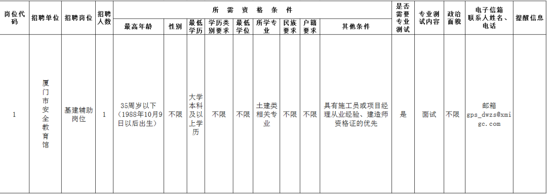 符合条件的报名人员请填写《厦门市安全教育馆补充非在编工作人员报名表》,并在报名时间内将此表发送至邮箱gps_dwzs@xmigc.com进行报名。