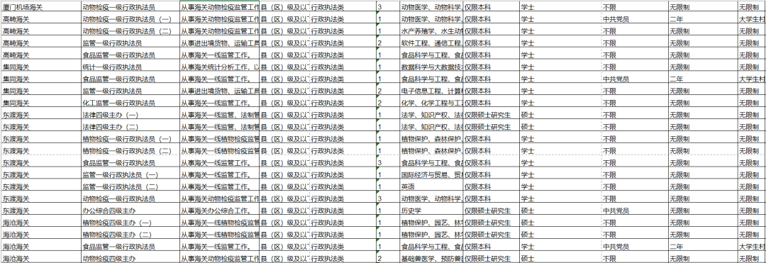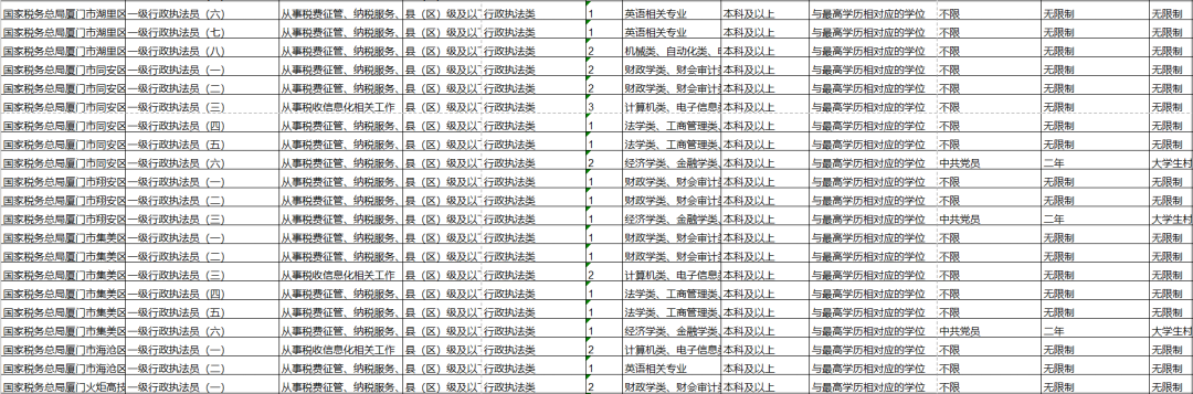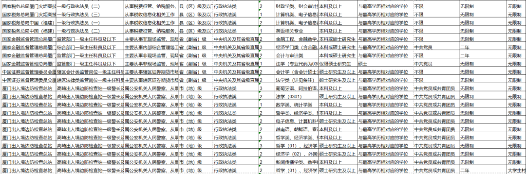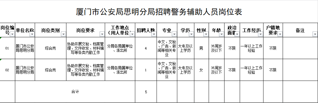 具体招聘岗位详见《厦门市公安局思明分局招聘警务辅助人员岗位表》,当岗位报名人数达不到招聘人数1:3时,可以减少该岗位人数、取消该岗位或者调剂报考人员。