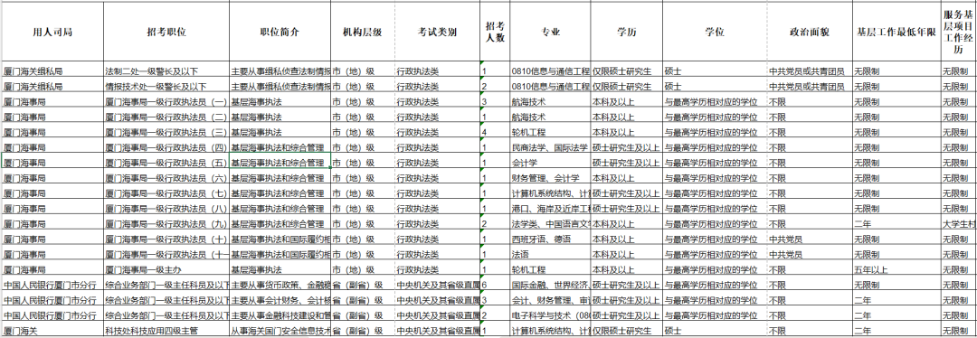 中央机关及其省级直属机构除部分特殊职位和专业性较强的职位外,主要招录具有2年以上基层工作经历的人员。市(地)级及以下直属机构主要招录应届高校毕业生。