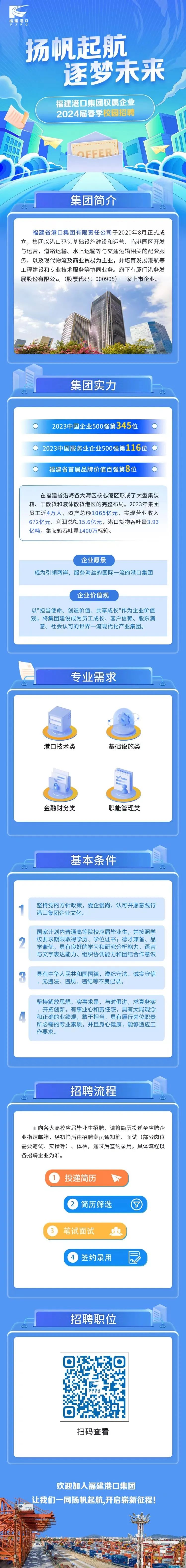 【招聘资讯】扬帆起航 逐梦未来丨福建港口集团权属企业2024届春季校园招聘