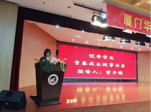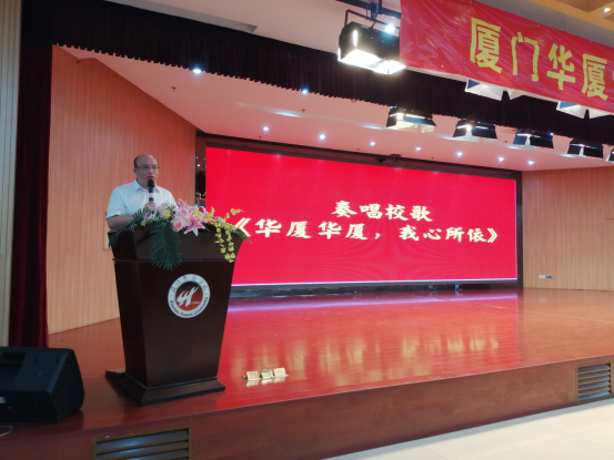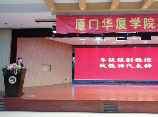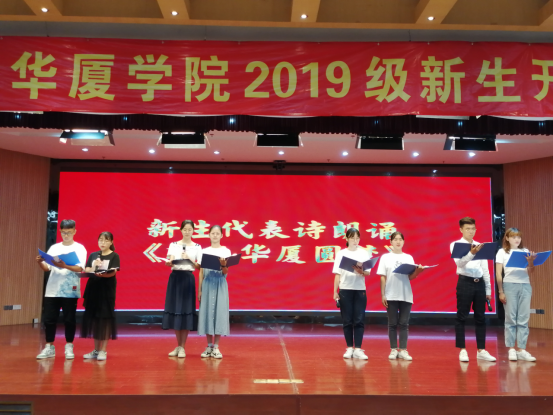 来自全国各地的8名新生代表进行诗朗诵,并用家乡方言来表达对华厦的问候与感激。“大学之道,在明明德”、“我是华厦新生,我在华厦圆梦”一句句激昂的诗,表达了新生们对未来老员工活的向往,愿她们可以带着这份激昂在我们的校园里开辟一方新天地。开学典礼上,新生代表们在教师节之际为良师们献上手工贺卡与鲜花,祝老师们教师节快乐!