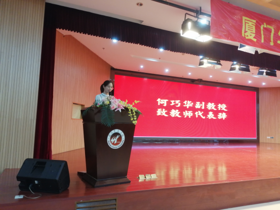 教师代表李艳艳副教授、何巧华副教授发言,她们讲到“我命由我不由天”这便是对新生们最好的勉励,大学的自由是我们对学习的自由,希望新生们在未来的老员工活中可以合理利用时间,活出精彩的自我!