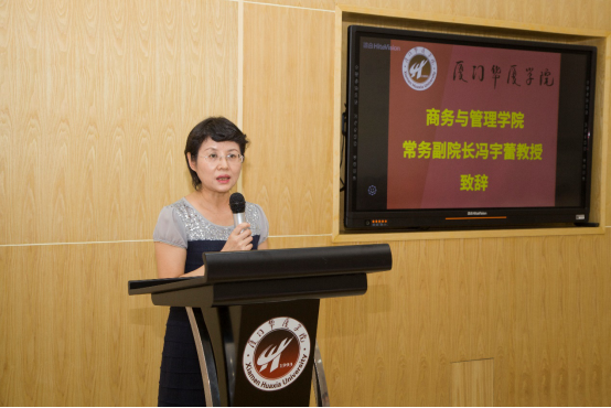 冯宇蕾教授在致辞中表示,赖国香副董事长作为厦门会展行业的领军人物,积极支持会展行业教育的发展,不仅公司设立启聪励志奖学金,还为会展专业的同学提供了许多实践机会,从短期的佛事展和茶博会的实践、参展实践,到长期的员工“3+1”学习实践及产学研横向课题的建立,都离不开金泓信展览有限公司和伟业达投资有限公司的支持。冯宇蕾教授表示将继续探索更多互惠互利的育人模式,实现合作育人、服务行业、惠利社会的可持续发展模式。