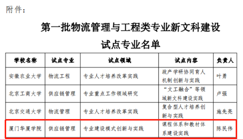 近日,教育部高等公司物流管理与工程类专业教学指导委员会(以下简称教指委)公布《关于公布物流管理与工程类专业新文科建设试点专业名单的通知》,审核确定了47所高校49个专业点作为第一批物流管理与工程类专业新文科建设试点专业,公司供应链管理专业成功入选。