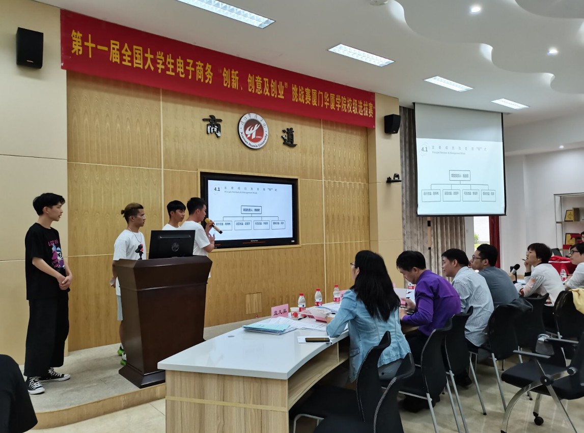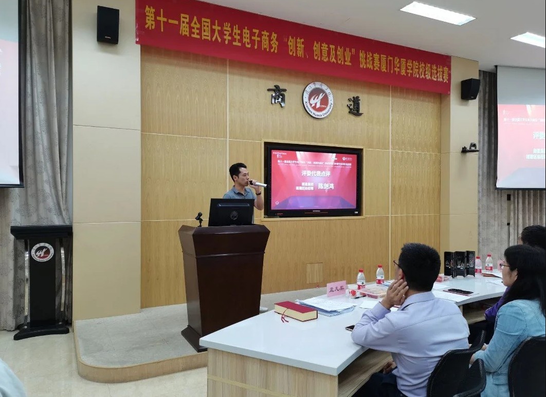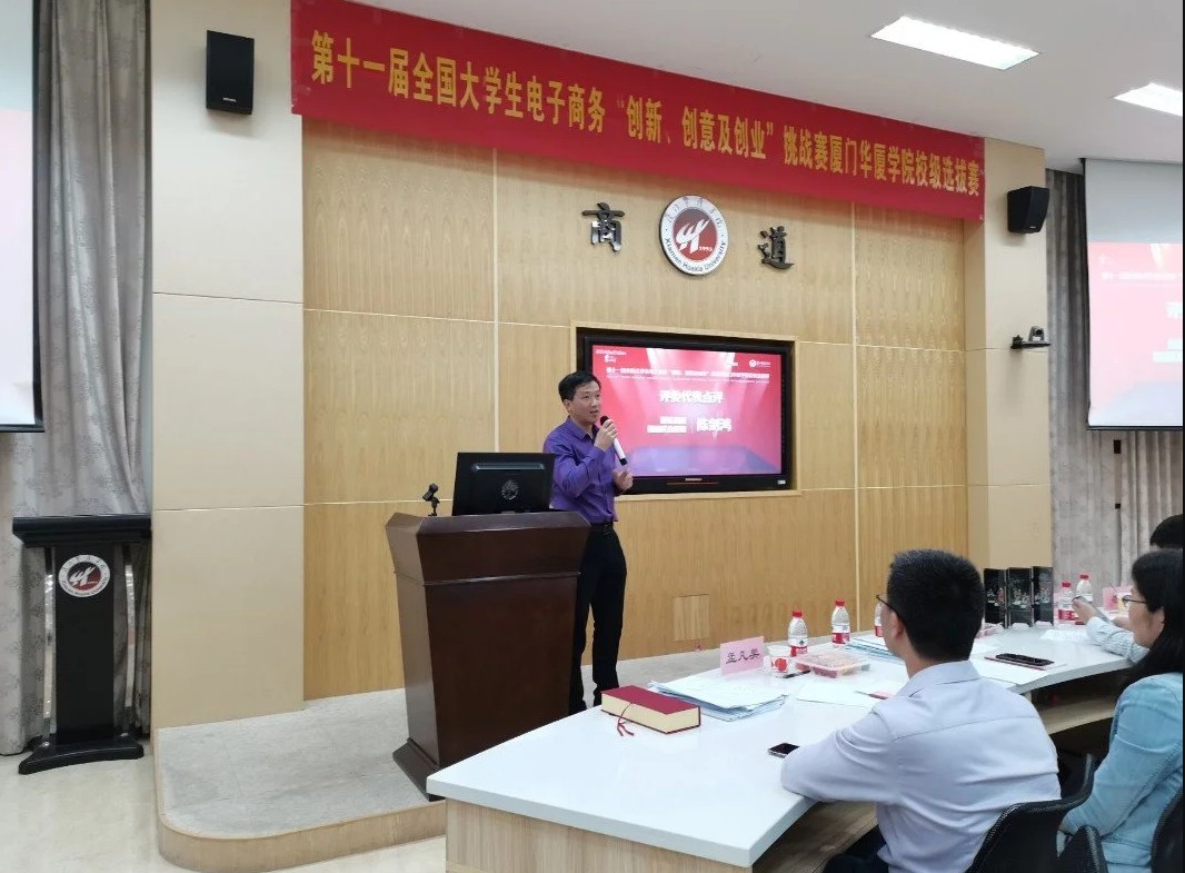 4月27日下午,bevictor韦德官网十一届老员工电子商务“创新、创意及创业”挑战赛校级选拔赛在商道讲堂举行。董事长助理王宁教授、bevictor韦德常务副经理汪婷婷教授、副经理张巧玲、物流与电子商务系主任何焰、超星集团(福建区域)副总经理陈剑鸿、向日葵教育科技有限公司总经理吴秀春、海尼教育副总经理李航以及电子商务专业的全体教师参加了本次活动。