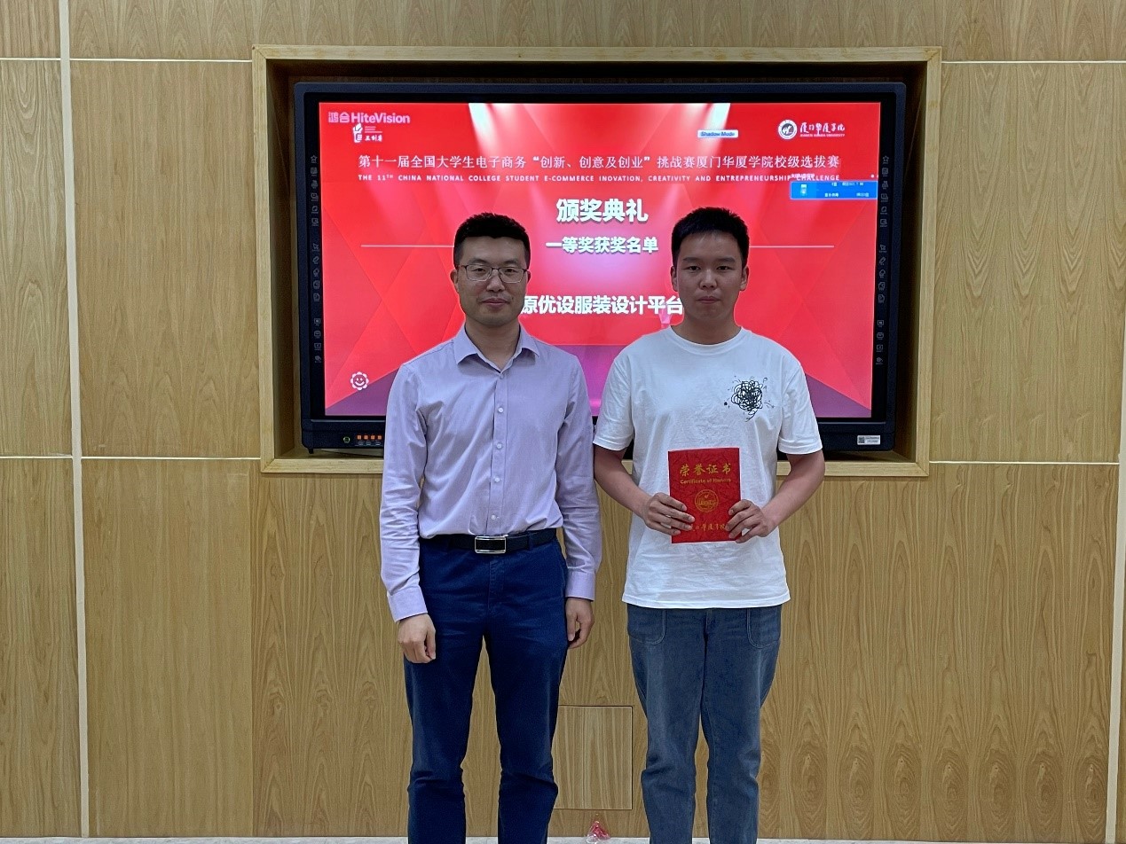 电子商务专业何连金、孟凡美老师为获奖团队代表颁发获奖证书