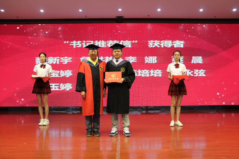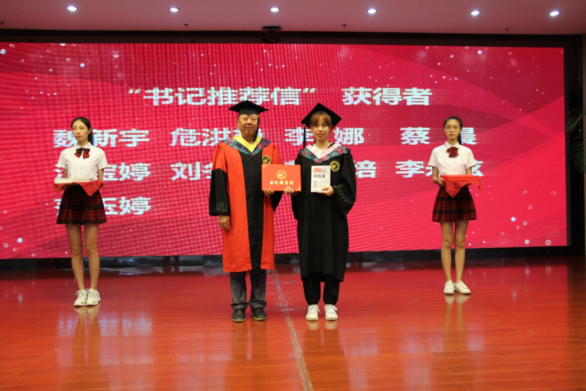 颁奖仪式后,公司学术委员会负责人宣读毕业决定、学士学位授予决定,校领导与导师逐一为毕业生授予学位、拨穗并送上祝福。拨穗完毕,毕业生全体起立,向老师们行鞠躬礼,表达感恩之心。