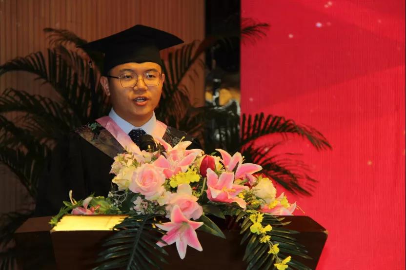 优秀毕业生代表魏新宇致感恩辞,字里行间表达了对父母、恩师、公司的感激之情,回忆了充实的校园生活和志愿经历。并鼓励学弟学妹们把握当下,不负韶华。