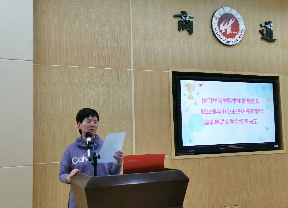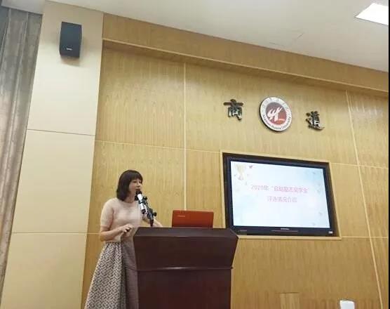 在仪式的开始,吴青兰副教授介绍了“启聪奖学金”项目的由来及今年的评选情况。“启聪励志奖学金”是王小如教授于2016年11月与厦门伟业达投资有限公司、厦门会展金泓信展览公司副董事长赖国香先生商定建立校企合作关系,并由企业每年出资9万元设立的,用于资助并奖励会展经济与管理专业家庭贫困,并在学习和实践中表现优异的30名同学,每人奖励3000元奖学金。今年是“启聪”奖学金发放的第四年,经过校企双方的协商,在2019年评审发放的基础上,进一步优化“启聪励志奖学金”评审规则,把会展专业2017-2020级(包括专升本)四个年级都纳入评选范围,让更多的会展学子有机会获奖,鼓励员工积极进取,早日成为会展行业应用型人才。