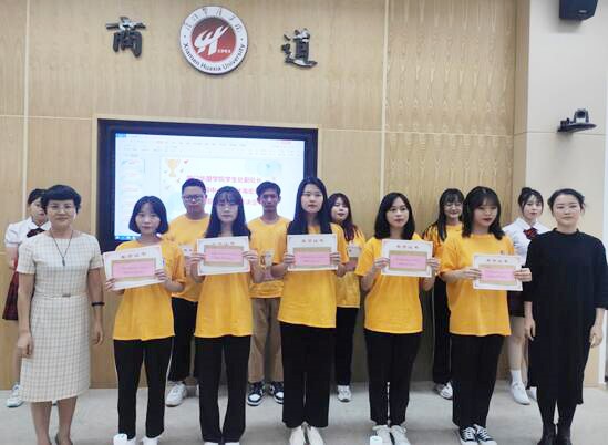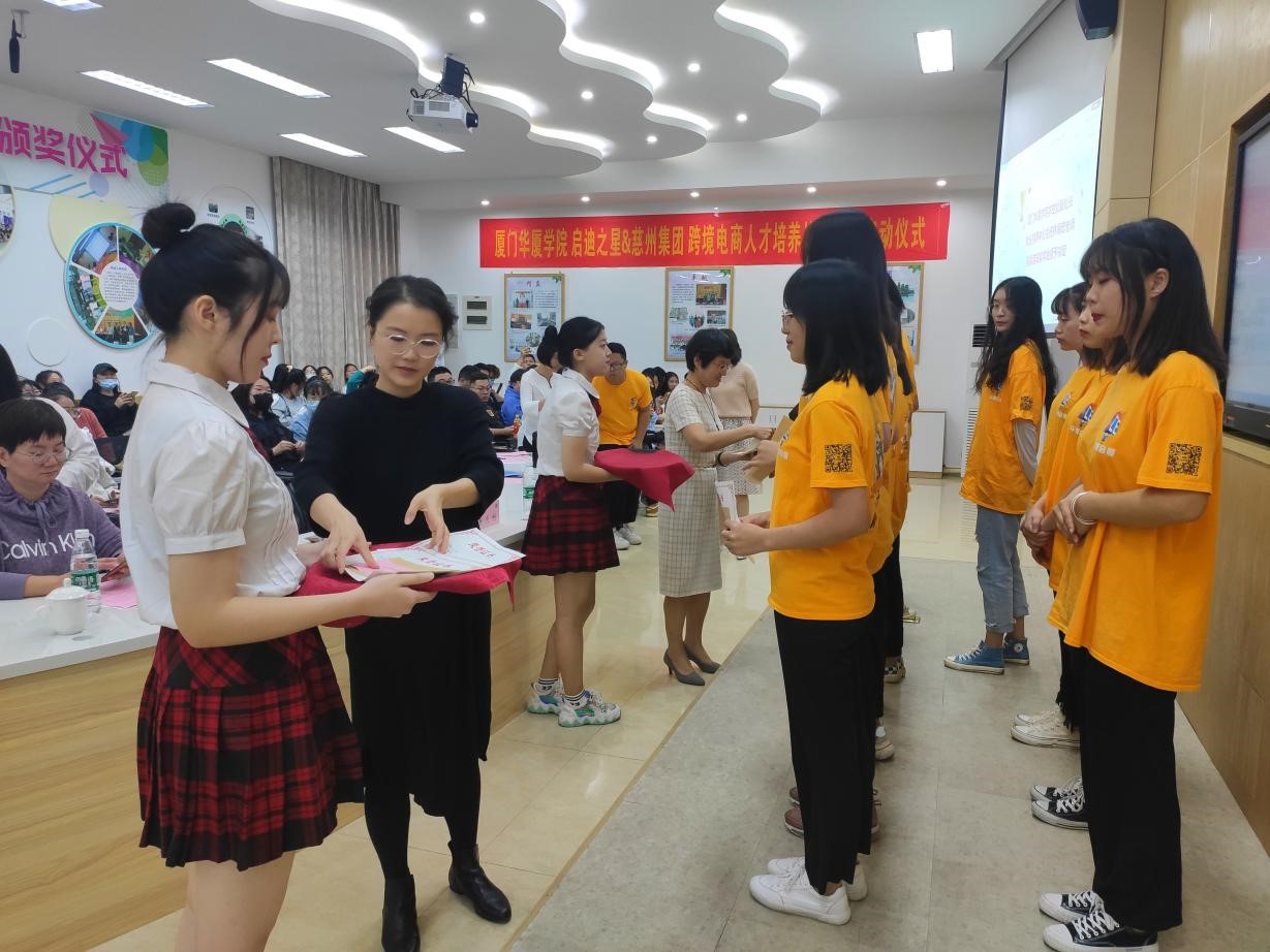 (谢肖畅女士、冯宇蕾教授为获奖同学颁奖)