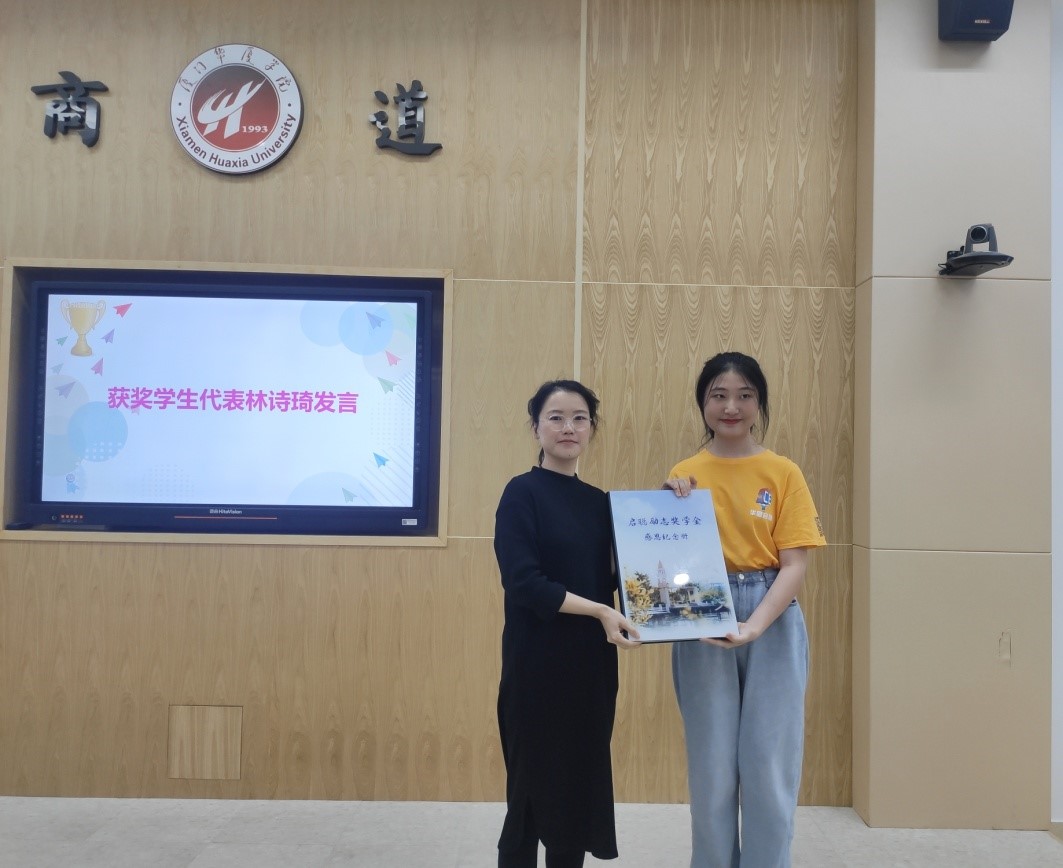 2020年度奖学金获得者还共同制作了一段视频,回顾了奖学金创建及发展的历史,展现了同学们在实习、比赛及文体活动中的风采,并对资助公司及公司表达了诚挚的感谢!随后,19级林诗琦同学代表全体获奖同学向谢肖畅女士赠送了同学们共同制作的“启聪奖学金感恩纪念册”,汇集了获奖同学的个人风采及对公司和赖国香先生的祝福。