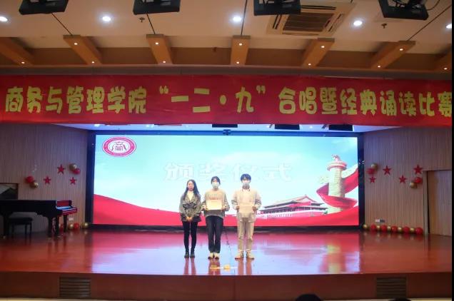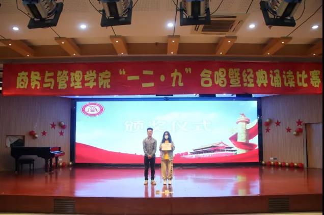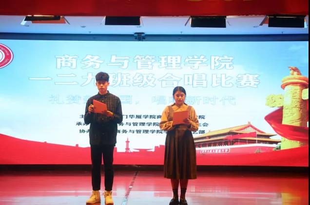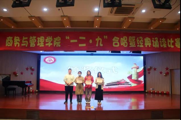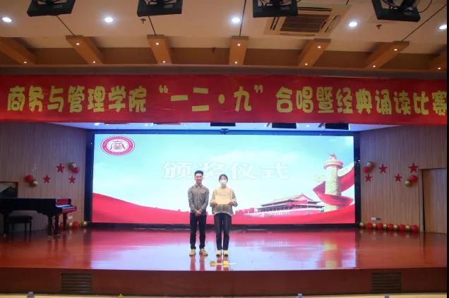 比赛以2021级电子商务2班合唱《我和我的祖国》拉开序幕。同学们挺拔着身姿,用动听的歌声为祖国献礼,他们唱出了青春的梦想,感染了在座的每一个人。2021级会展经济与管理1班以一首《我们都是追梦人》带领我们打开记忆的长卷,走向岁月的远方。“五星红旗迎风飘扬”,2021级财务管理2班的《歌唱祖国》,唱出了他们坚定的信念,描绘出青春的倩影。2021级会计学1班全体同学激情演唱《歌唱祖国》,同学们用动听的旋律演绎着爱国的激情,激昂的曲调为我们展现着信念的色彩。