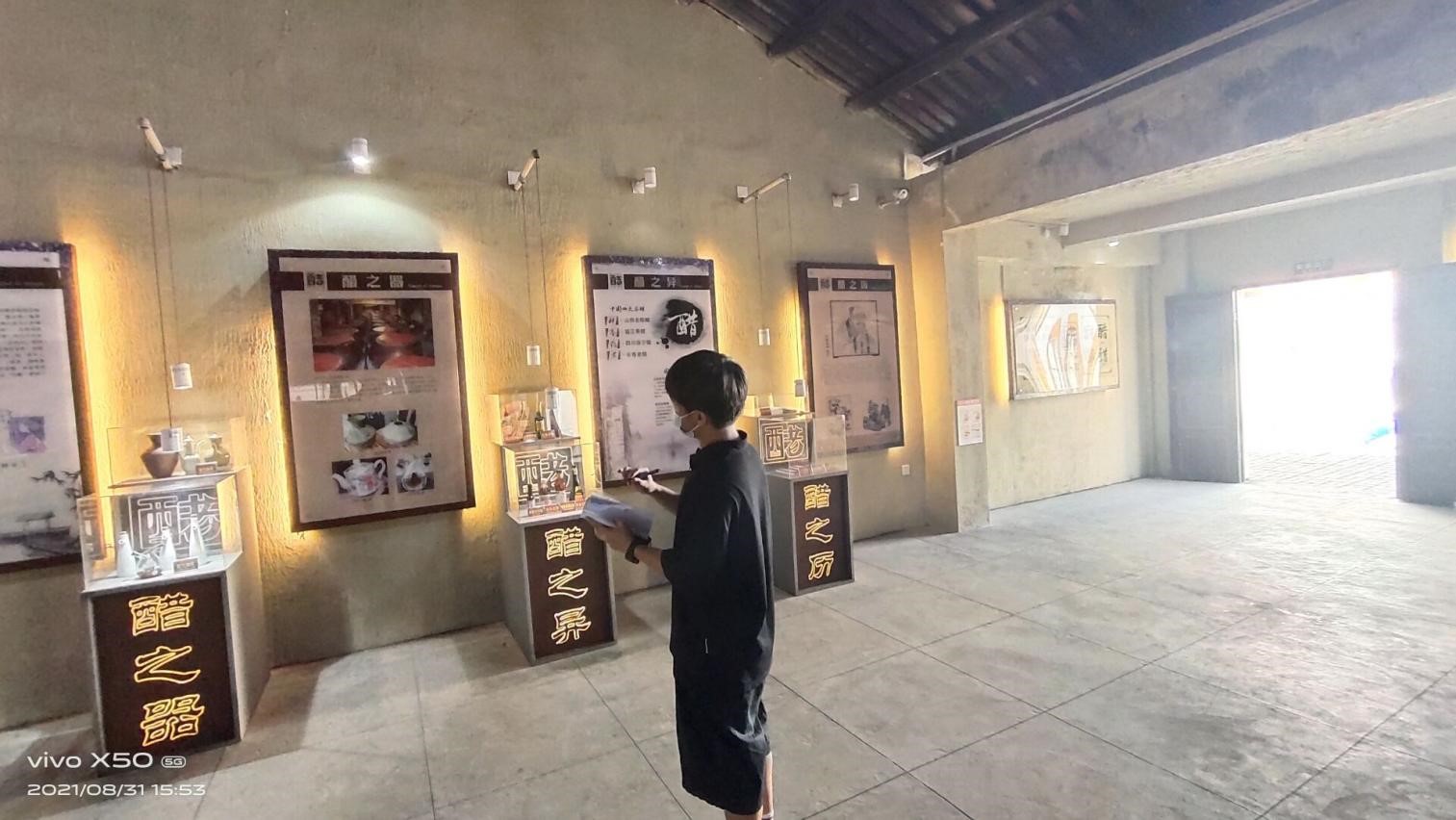 经讲解员讲解得知,早在北宋初年,永春民间即开始酿造老醋,其酿造技术独特。永春老醋以优质糯米、红粬、芝麻、白糖等为原料,经精制陈酿三年以上而成,醋香浓郁,性温热,酸中有微甘,醋味柔和,醇香爽口,回味生津,紫薇鲜美,其酿制流程为:优质糯米浸泡—滤干—蒸煮—拌入红粬—入酝—发酵—陈酿而成老醋,是质地优良的调味品,远销40多个国家和地区。2009年6月,永春老醋被列入福建省非物质文化遗产代表作名录。