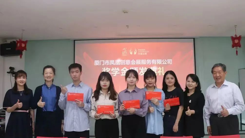 “凤凰会展奖学金”是厦门市凤凰创意会展服务有限公司于2019年在厦门市教育基金会捐资设立的奖项,每年从厦门市各高校遴选10名优秀的会展专业员工,每名员工奖励5000元,鼓励其学习新知识、研究真学问、解决真问题,在会展之路上奋勇前行,助力其成长成才,从而为企业与行业发展注入源源不断的新鲜血液。截止第三届奖学金颁发,公司已有16名会展专业优秀员工获此奖励,今年获奖的5名同学分别是来自会展经济与管理专业的郑晨辰、叶婧微、陈祥瑞、林镕、黄思凌。