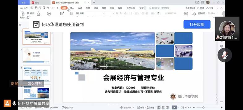 课上,郭文茂老师强调公司非营利办学的理念,带领同学们走进校园,了解公司的学习和生活环境以及大学的教学体系,具体从魅力华厦、精彩商管、良师益友、校园生活、学习成长等方面展开讲解,为新生从高中过渡到大学搭建了桥梁,让同学们切身感受到老员工活与以往学习生活的不同,更有利于新生入学前学习观念的转变,为日后更快融入老员工活做好准备。在最后答疑环节,新生们积极提问,郭文茂老师耐心解惑,线上互动氛围活跃。