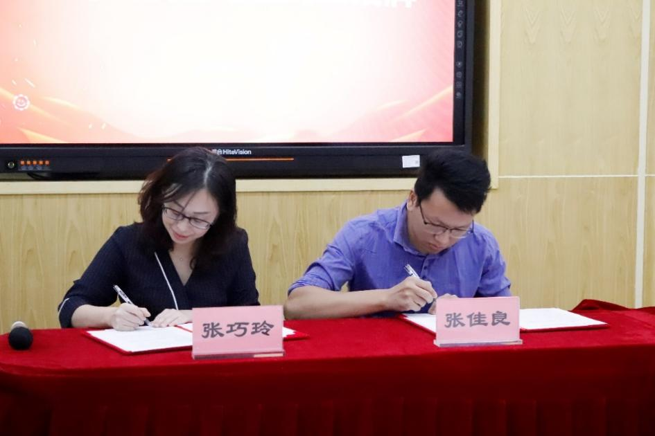 致辞结束后,国科科技教育市场总监张佳良先生与bevictor韦德副经理张巧玲签署合作协议并合影留念,整个讲堂掌声雷动。