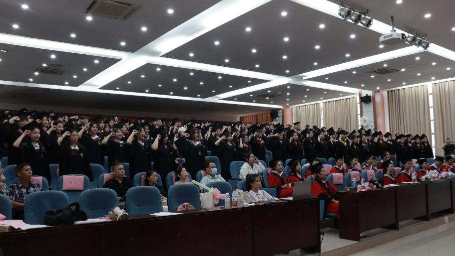 毕业生代表向教师代表敬献鲜花、行致恩礼,全体毕业生起立宣誓,表达对母校的敬意和对恩师的感谢。