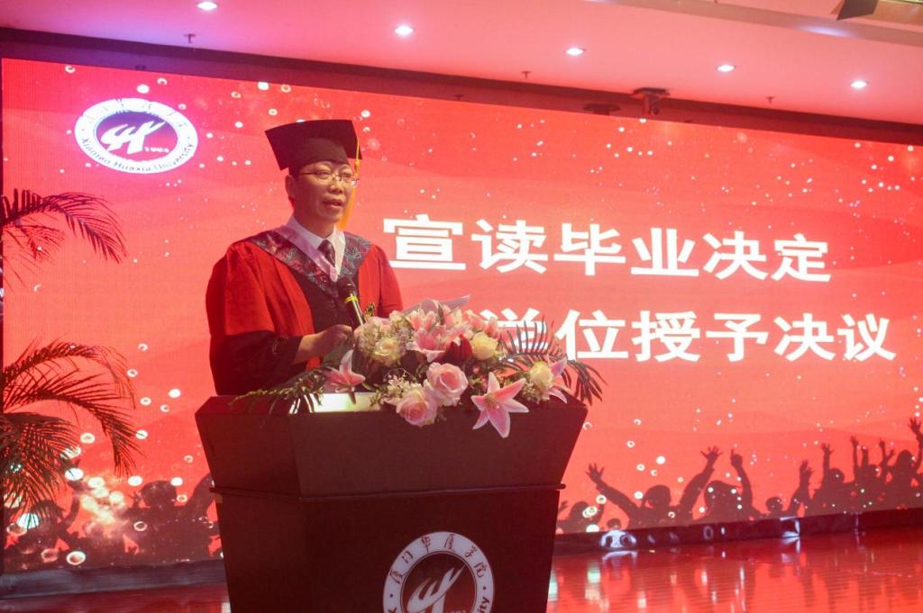 常务副董事长陈民伟宣读毕业决定、学士学位授予决议。
