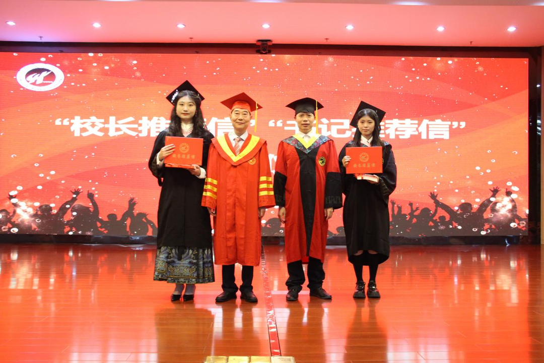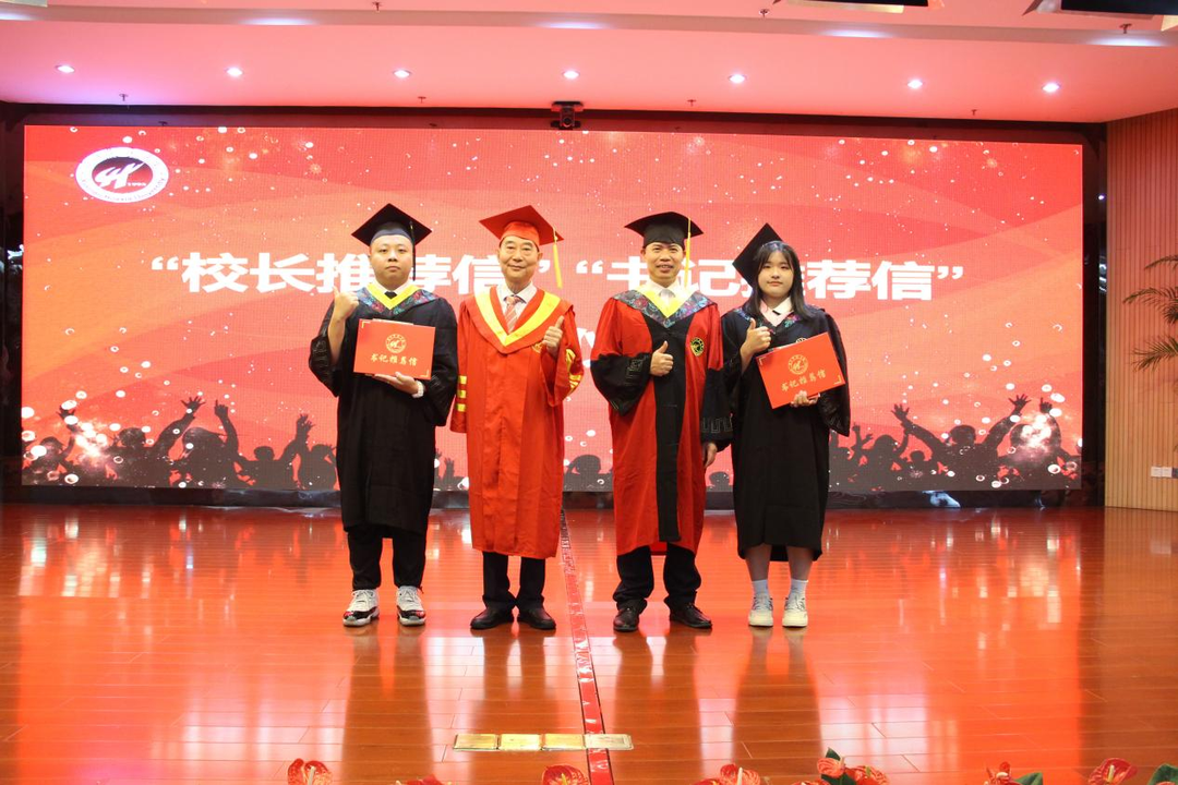 董事长谢增鸿、校党委书记徐志怀分别颁发“董事长推荐信” “书记推荐信”等荣誉,并赠送书籍《习近平与老员工朋友们》,希望同学们能从访谈实录中有所悟、有所思,牢记习近平总书记的嘱咐,立大志、明大德、成大才、担大任,努力成为堪当民族复兴重任的时代新人,让青春在强国建设、民族复兴的新征程中绽放绚丽之花。