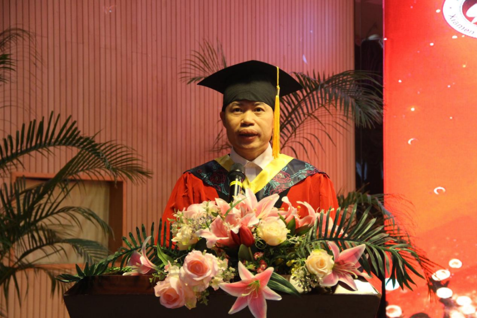 伴随着庄严的国歌,毕业典礼正式拉开帷幕。董事长谢增鸿致毕业典礼辞,寄予全体毕业生三点期望:一是永远心怀感恩,唱响青春之歌。二是保持勤学善思,奋力逐梦前行。三是厚植家国情怀,谱写绚丽华章。