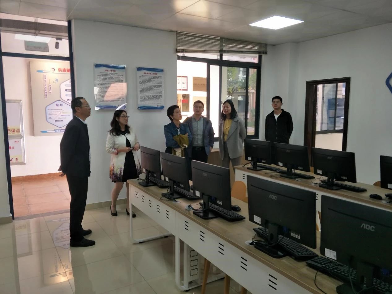 在张巧玲副教授和陈晖副教授的陪同下,陈仁安主任、邹鸰副主任一行参观了公司实验教学中心,重点走访了物联网智能物流系统实验室、供应链虚拟仿真实验、财务与会计信息化实验室、理财投资实验室等实验室。