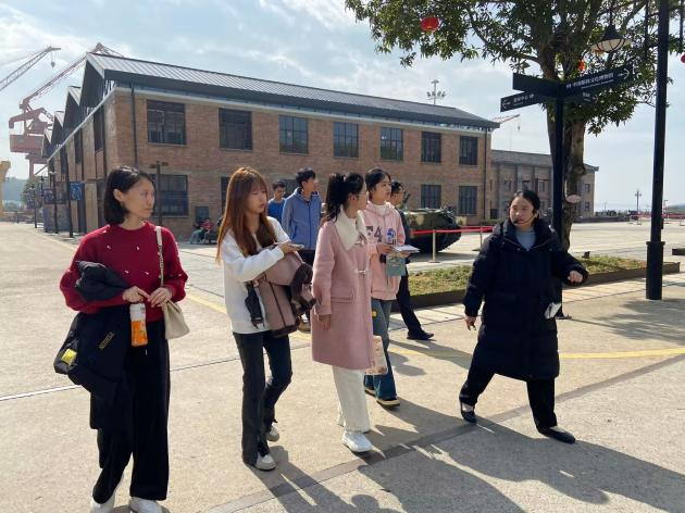 实践第二站——中国船政文化城。在讲解员的带领下,实践队成员深入了解了福建船政建筑群的历史背景、建筑特色、工业设备和生产流程,通过参观福建船政建筑群,实践队成员亲身感受到了中国近代工业的发展历程和船政建筑的独特魅力。在与讲解员的交谈中,实践队成员更加了解了船政文化的当代价值以及中国船政文化城在推广和传承船政文化方面做出的贡献。
