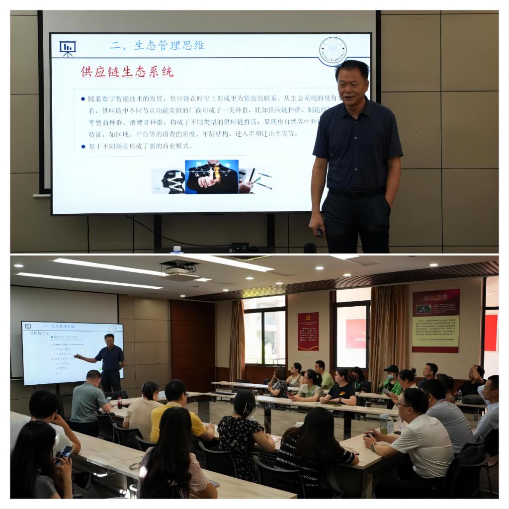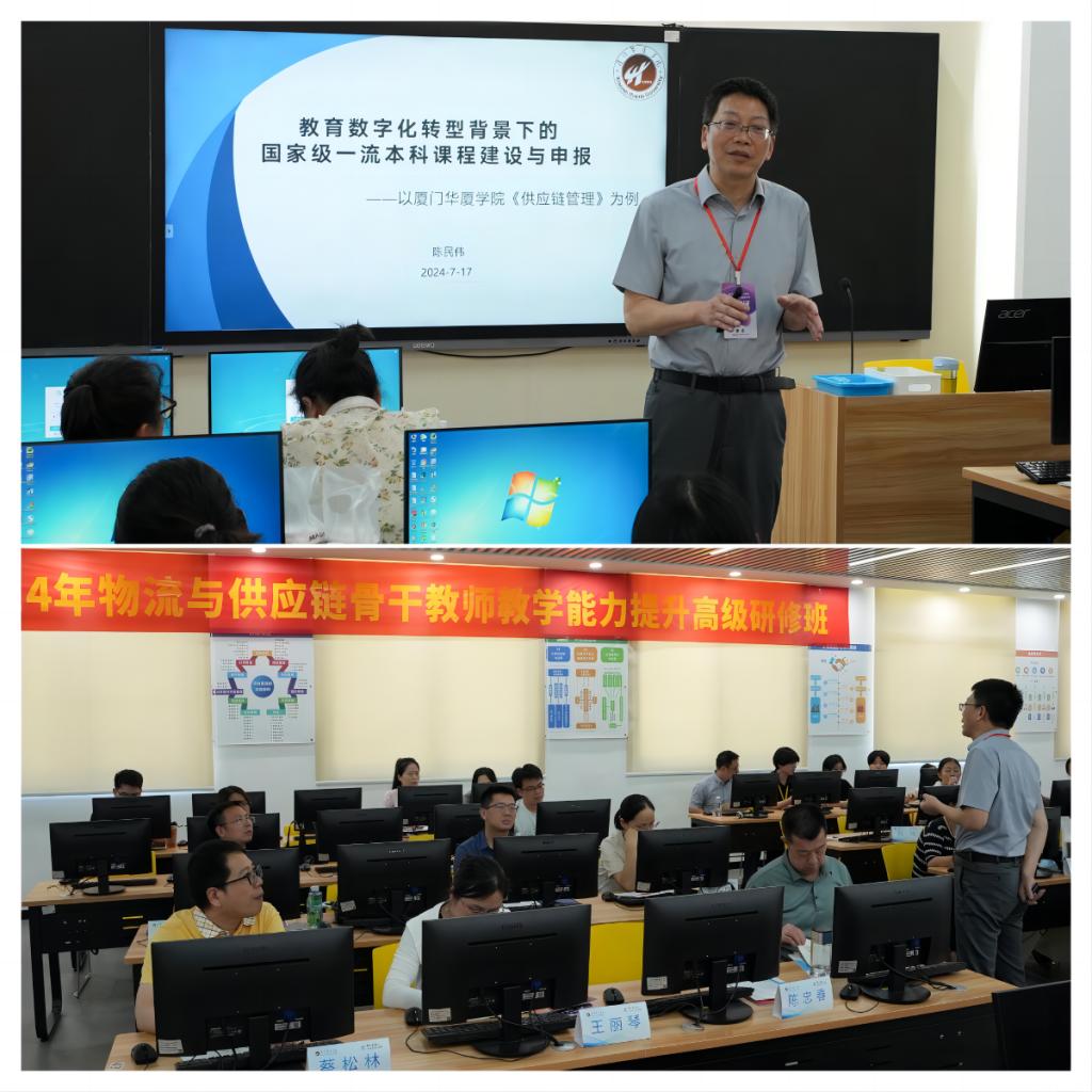 本次研修班共安排6个培训主题。公司常务副董事长、教育部物流管理与工程类专业教学指导委员会委员、供应链管理专业建设组副组长陈民伟教授受邀作《供应链管理课程国家一流课程申报经验分享》专题报告。陈民伟教授以国家级一流课程建设的时代背景为切入点,从课程建设顶层设计、建设理念、数字化平台构建三个方面深入浅出的解析国家级一流课程建设的思路,并从材料提交、教学团队、课程目标等方面解读了课程申报的细节。