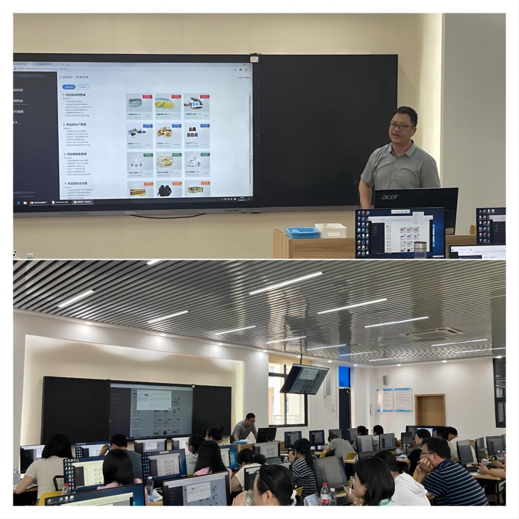 厦门易木科技有限公司项目总监吴建忠讲授《供应链管理课程数智化教学工具》与《供应链金融课程数智化教学工具》课程,重点对《易木供应链时代实战平台》《易木供应链管理实训平台》《易木供应链金融实战平台》三款数智化教学工具进行详细介绍与展示,并就数智化教学工具应用相关问题与学员深入交流答疑。