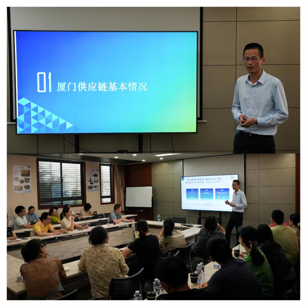 厦门市现代供应链联合会秘书长、中国(厦门)供应链科创中心创始专家林少云受邀作《厦门供应链创新与应用经验案例》专题报告。林少云秘书长为学员生动的展示和讲解了厦门供应链基本情况,并以厦门建发股份有限公司为例,多角度解析其供应链运营情况。学员实时互动,课程氛围和谐,受到学员的高度赞许。